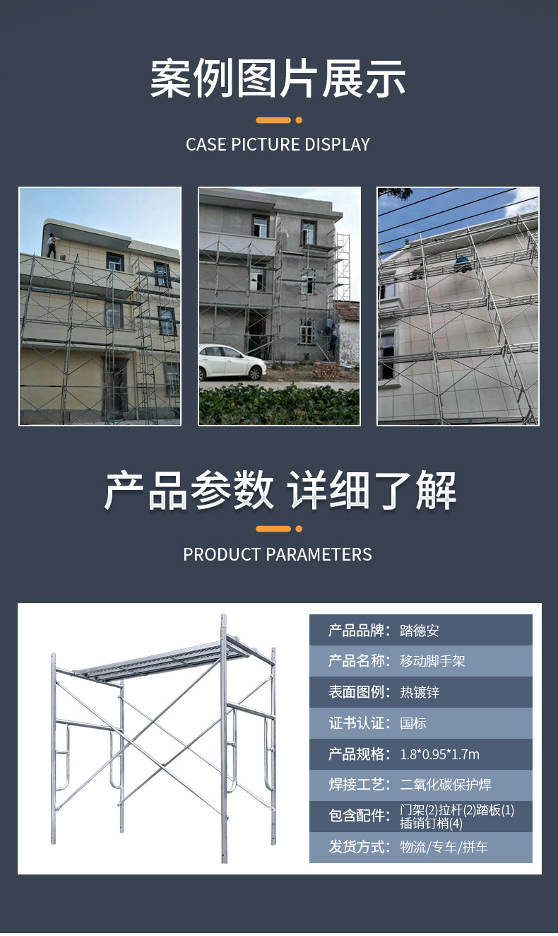 門式雙層腳手架結(jié)構(gòu)簡單,移動方便,上下兩層可以站人和放置施工工具,增大了工人在施工中的性,并且腳手架下面還可以輕松過人,為施工